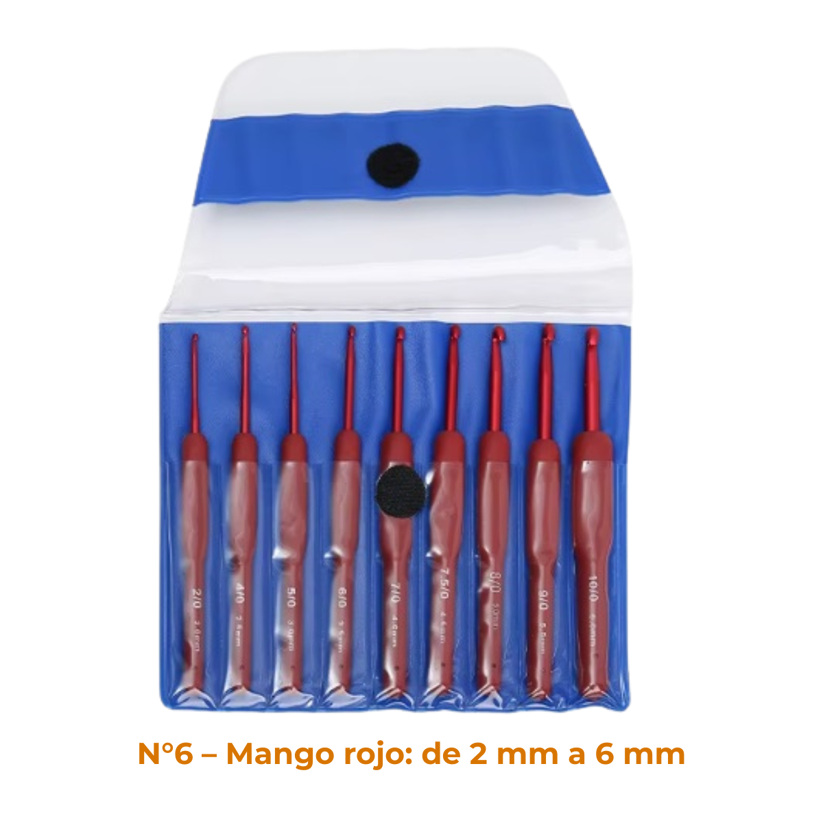 🔴 N°6 – Mango rojo | Medidas de 2 mm a 6 mm